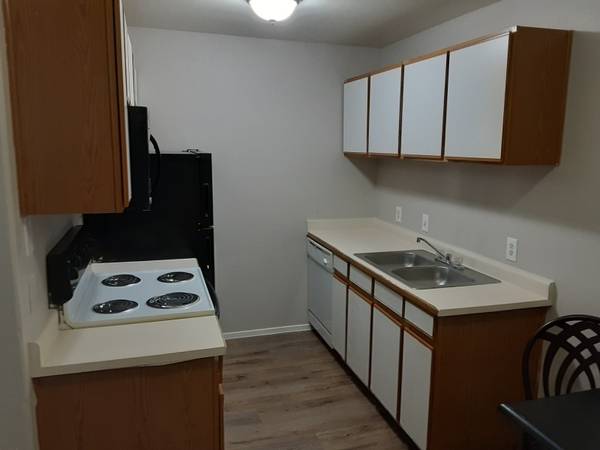 Kitchen with full-size stove, refrigerator, microwave, and dishwasher