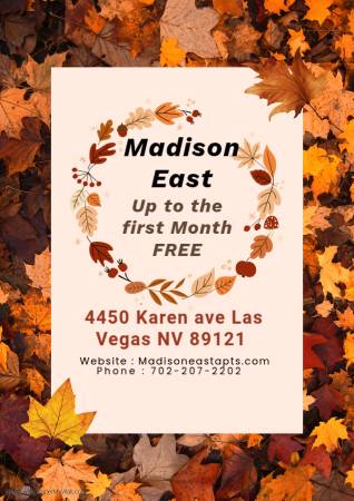 Madison East Apartments is offering Up to 1st month's rent free!!!!!