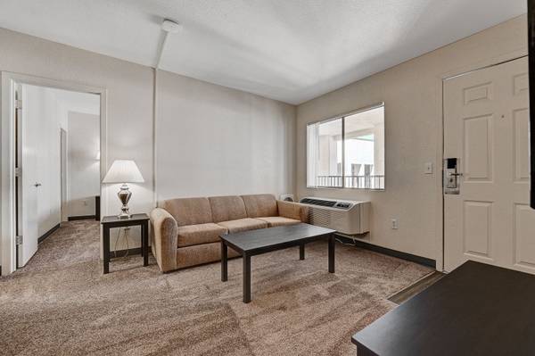 Emerald Suites at S. Las Vegas Blvd offers spacious 1 and 2 bedroom furnished apartments in Las Vegas, available weekly and extended-stay rentals with all the amenities you need to feel right at home. Just minutes from Town Square, Las Vegas Premium Outlets, McCarran International Airport, and the Las Vegas Strip, this is the perfect option for those seeking leisure stays, snowbirds, and corporate housing in Las Vegas.