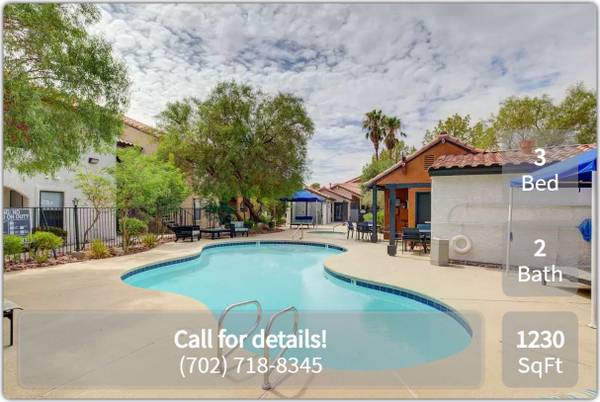 Description: At Villa Del Rio Apartments, you'll be surrounded by the convenience and comfort you desire. Whether its our 1-, 2-, or 3-bedroom units, you'll be outfitted with all-electric kitchen and washer and dryer appliances to help make life more simplistic. Our community offers a variety of amenities, such as two sparkling swimming pools, an on-site fitness center, and multiple playgrounds to bring out the kid in all of us. You'll also appreciate our BBQ areas and picnic spots - perfect for year-round fun in Las Vegas's appealing climate.