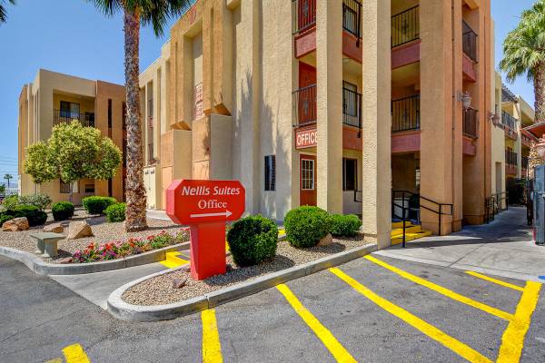 Nellis Suites at Main Gate is an all-suite extended stay community offering quality accommodations and exceptional guest services. Located directly across the street from the main gate of Nellis Air Force Base, one mile from the Las Vegas Motor Speedway, and only minutes from the world-famous Las Vegas Strip. Nellis Suites at Main Gate is the obvious choice for quiet convenience just minutes away from the action.
