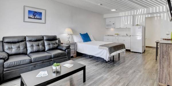 -Pet Friendly -Sparkling swimming pool -Furnished Apartments Available -Near Nellis Airforce Base and Las Vegas Motor Speedway -Wi-Fi Included -No long term lease required -Large studio apartments -Microwave -Bad Credit Ok -Walk-In Closet -Free premium cable TV -Guest Room