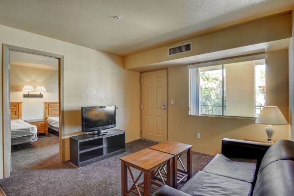 Nellis Suites at Main Gate is an all-suite extended stay community offering quality accommodations and exceptional guest services. Located directly across the street from the main gate of Nellis Air Force Base, one mile from the Las Vegas Motor Speedway, and only minutes from the world-famous Las Vegas Strip. Nellis Suites at Main Gate is the obvious choice for quiet convenience just minutes away from the action.