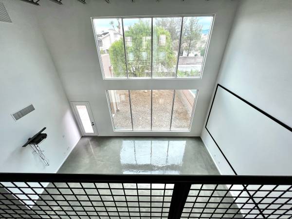 This home is approximately 3380sqft! Amazing open space, contemporary concept! There are three bedrooms, 2 full bathrooms, 2-car garage, large balcony off the master suite, and a large yard with a covered patio. It is a very unique, modern loft-style home, with soaring, high ceilings and exposed duct work and beams. The main room features expansive, picturesque floor to ceiling windows unveiling the home to an abundance of natural light and pristine sunset hues.
