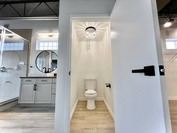 The entire dwelling has been renovated last year with new paint throughout, from the walls to the ceilings to to the cabinets and stairs. New flooring throughout, including large-plank waterproof laminate flooring sprawling the enormous upstairs master retreat, bathroom, closet, and storage area, and custom stained concrete flooring staging the downstairs with a modern industrial feel. You will be in awe at the size of the master bathroom, with dual sinks and vanities, huge walk-in shower with two entrances, multiple shower heads and separate bathtub. You will get lost in that over-sized run-in closet! All sinks and faucets in the home have been upgraded, brand new toilets, stainless-steel appliances, Google Nest thermostats, and modern light fixtures throughout. To top it all off, the main room features a high-end projector system with a large custom screen! This feels like a brand new home with a NYC penthouse vibe.