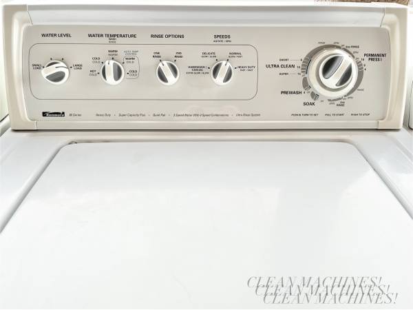 Kenmore 80 series washer and gas dryer. Super capacity, heavy duty, extra rinse, wrinkle guard. Completely serviced in good condition and work great. Clean from the inside out. Brought back as close to new as possible. 90 day warranty and can help with delivery. Many washers and dryers available.