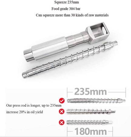 [HOT AND COLD PRESS FOR DUAL USE]- The unique cold press function is applicable for all dry material, as long as the materials are dry enough (high water content will adversely affect pressing performance), the cold pressing function can be perfectly realized and completely retain natural nutrients, while hot pressed oil contains no water and purer.