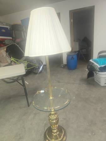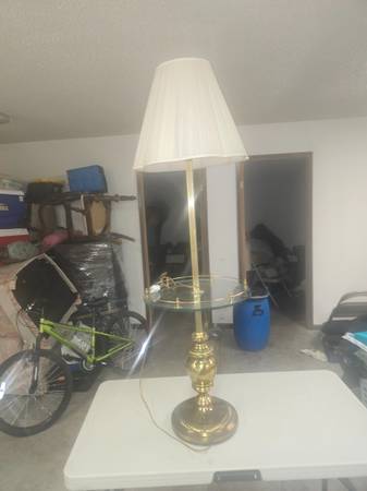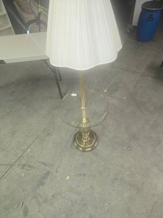 Late 20th Century Brass and Glass Tray Table Smokers Floor Lamp