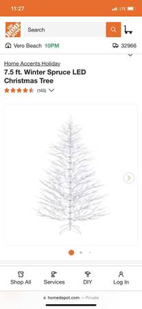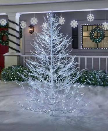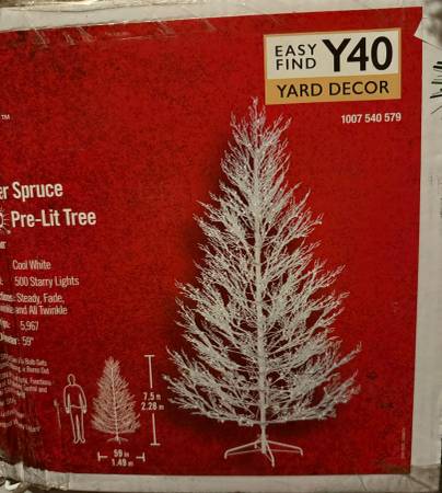 Tis beautiful white tree gives you the look of a snow-covered spruce outside your home. It features 5,967 tips and 500 cool white LED lights for long-lasting illumination. This tree also includes a remote control for hassle-free operation from anywhere.Pre-lit artificial spruce Christmas treePE branch tips accommodate your garland and cherished ornamentsTree stands 7.5 ft. H and 59 in. base dia.5,967 tips offer thick lifelike foliageEnergy-efficient LEDs deliver cheerful lighting500 lights provide lasting illuminationSeparate remote control enables hassle-free operationEasy to assemble in your outdoor space