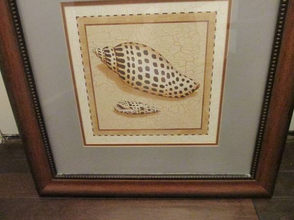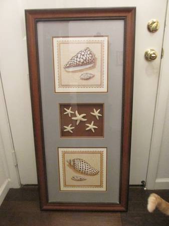 Picture Frame Ocean Picture With 2 Ocean Shell Pictures And Shadow Box With 5 Real Star Fish. Beautiful design with a picture on the top of the frame and the bottom of the frame with the shadow box in the center with the Star Fish inside.