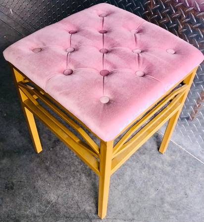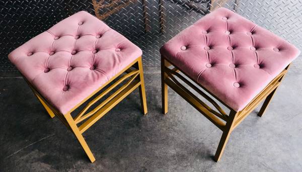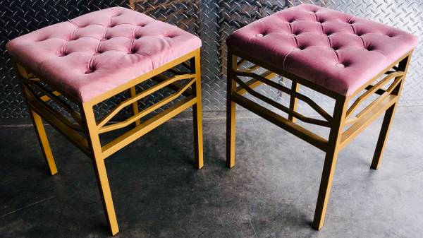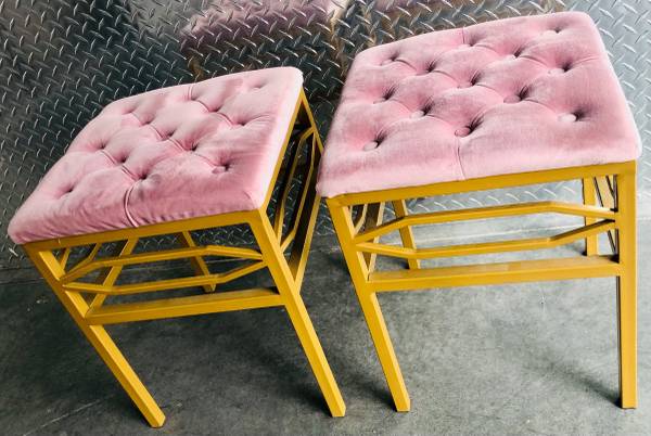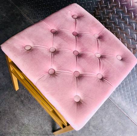 Pink Velvet Gold Metal Vanity Chair Sturdy Stool Make Up Room Bed...