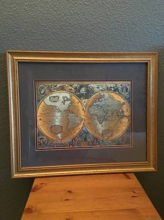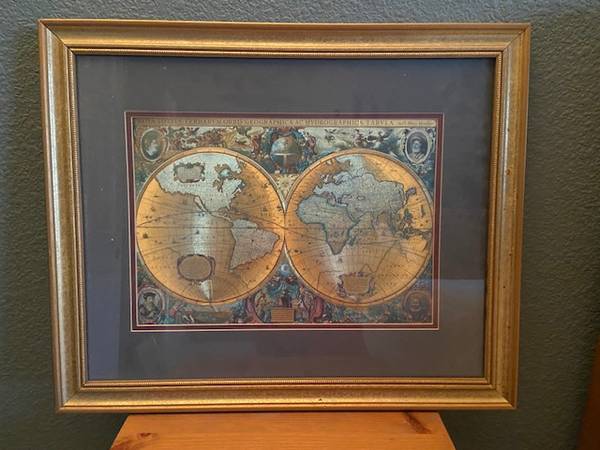Selling: World Map writing in Latin Framed w glass 23" x 19" Very cool! $40