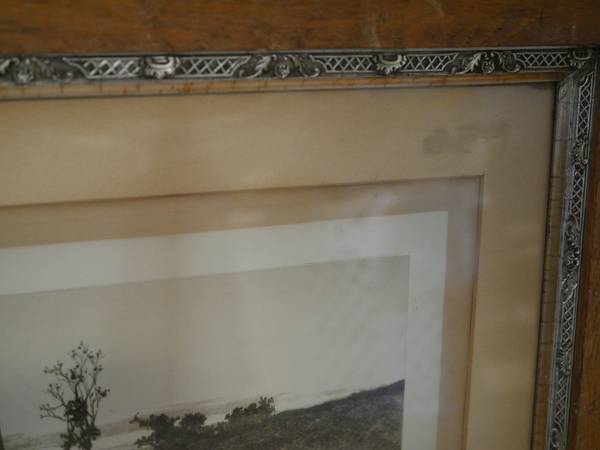 Antique 1890's Etching by Ernest Rost Measures 37 1/2 x 22 1/2 inches. it is in the original wood frame with glass front In good shape but you can see some moisture damage with the lines down the...