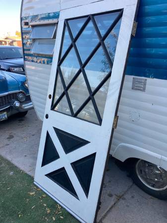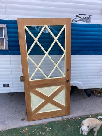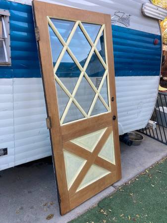 Vintage farm house front door in solid good condition no breaks, cracks or seperations in useable condition. I have about 10 vintage doors here at my old house downtown.