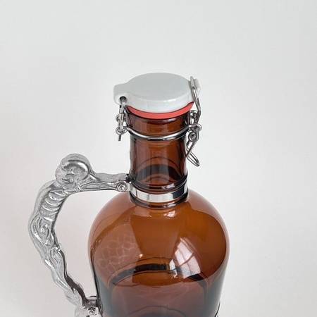 Dare to be different? This isn't just a growler, it's a statement. Imported from Germany, this stunning 2-liter amber glass growler features a hauntingly detailed aluminum skeleton handle, guaranteed to turn heads. "Musterschutz" protected design ensures unique craftsmanship. Perfect for homebrewers, craft beer enthusiasts, and anyone who appreciates a touch of gothic elegance. Keep your favorite brew fresh and cold in macabre style! beer growler craft beer growler glass growler 2 liter growler growler bottle beer bottle German beer growler amber glass growler skeleton handle growler aluminum skeleton handle gothic growler unique beer growler novelty beer growler Musterschutz growler flip top growler swing top growler homebrew 2 liter amber glass beer growler with skeleton handle German design protected beer growler where to buy skeleton handle growler unique gifts for beer lovers gothic home bar accessories amber growler with metal handle best growler for craft beer German made beer growler collectible beer growlers