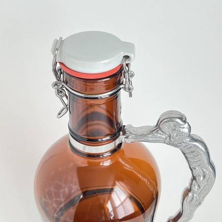 German Beer Growler 2 Liter Amber Glass Alum Skeleton Handle Muster Geschutzt