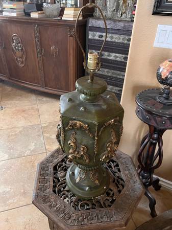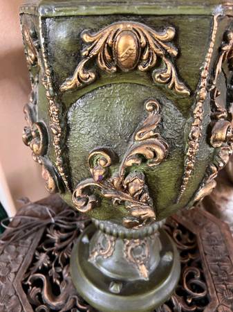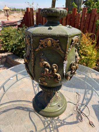 Has some paint chips .Needs touch up . Made out of plaster . Beautiful.