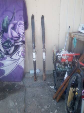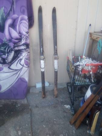 Antique 1920"s C.A. Lund Record Wooden Snow Skis. In Excellent Condition with Original Bindings. Great for interior decor.