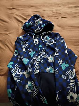 Blue jacket wit blue and black checkered patterns finished off with some beautiful white and blue flowers. Fashionable, great for spring time haven't been worn in a year clean on sell for 20$ I can...