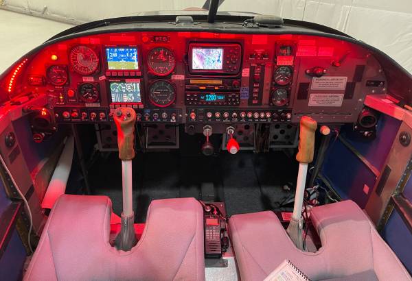 Dual toe brakes, 5-point harnesses, adjustable rudder pedals, electric flaps, panel pitch trim indicator, RAM iPad mount with power, Classic Aero padded cloth seats, low-pile carpet, under-panel lighting, Kroger canopy sunshade, LED map lights, insulation, excellent heat, and SkyOx portable oxygen. Backup analog gauges for redundancy.