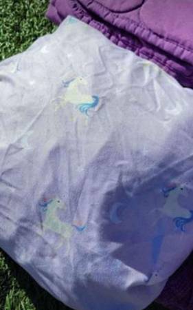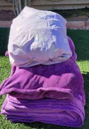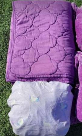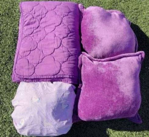 Twin Size Purple Set Very Prety Great Conditions Include: Purple Twin Comforter Twin Fitted Sheet 2 Purple Matching Pillows Set Girls Purple color Beautiful Twin Bed Set