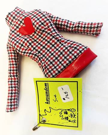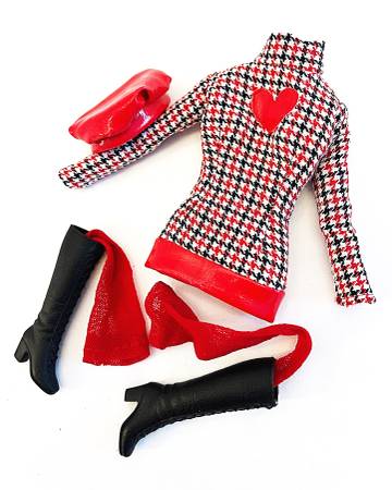 One-of-a-kind Designer, handmade Barbie doll OUTFIT! Includes ALL pictured: Plaid ❤️Dress❤️ Red Hat (vinyl) Black Boots (knee-high) Red Leggings (lace-ish) Selling as a set. Selling as-is &...