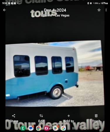 One very dependable bus. Holds 16. Runs drives great. No oil leaks. Just serviced. Oil clean. New tires brakes belts and alternator. Has $2k bose system in it. For sale or trade what you got. Need rv. Or car or?? Paid $12k b.o. need gone no wear to park. Drove to death valley nv and back twice. Run great. Rare van because on title listed as a van. Very cheap insurance. And easy to insure. Great to drive around town getting groceries and even moving items. What u offer ill go way lower b.o