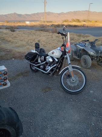 2000 Harley Davidson Dana Wide Glide, needs nothing. Has Vance exhaust, aftermarket bigger carb, new brakes and all fluids changed less than 300 miles ago. Has only 30k miles. Looking to trade for truck, atv or a trailer Perfer Ford or Chevy. 6500.00 obo, 702-six zero four- 9371