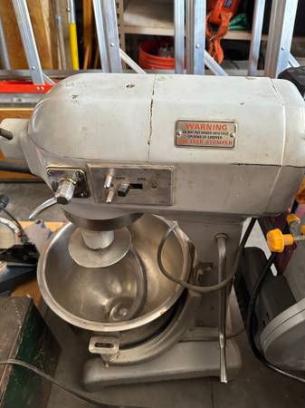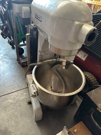 Hobart A200 20 quart mixer with bowl and dough hook.