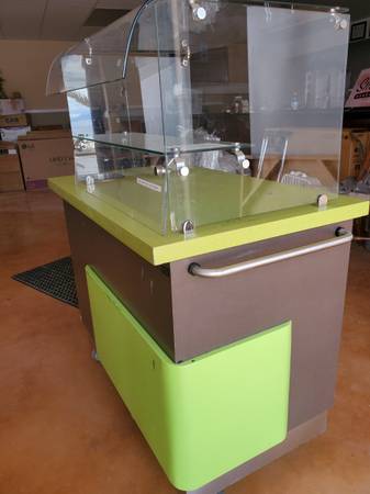 Sample Cart For Sale Stainless steel construction with handle (2 wheels with locking brakes; 2 with directional locks) Glass sneeze guard 2 doors, 1 drawer *Can be assembled as pictured, but...