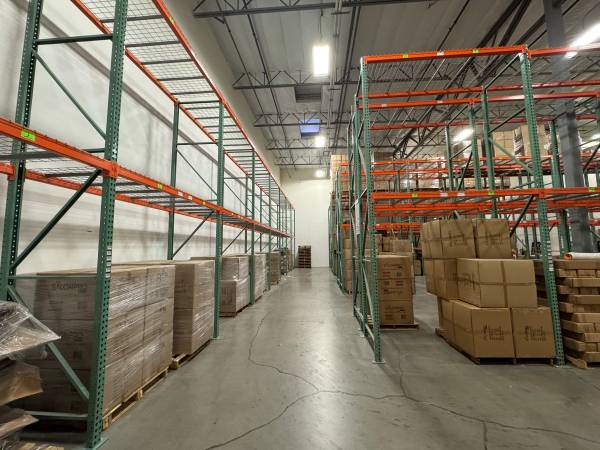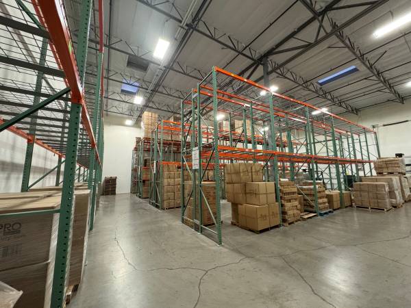 For Sale: Complete heavy-duty warehouse pallet racking system in excellent condition.