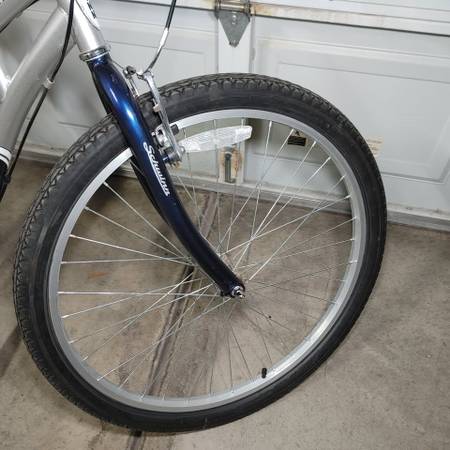 Schwinn Ladies Jaguar Cruiser bicycle-blue/silver bike Wheel size 26, 7 speeds Located Fort Apache and warm springs I DONT REPLY EMAILS. Text with emails will be blocked.