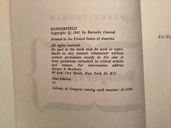 Barnaby Conrad best known for his numerous books on the art of bullfighting, including the big best seller Matador, now gives us a story of a very famous author, Winston Dangerfield