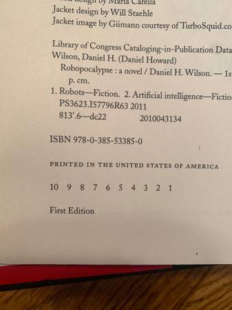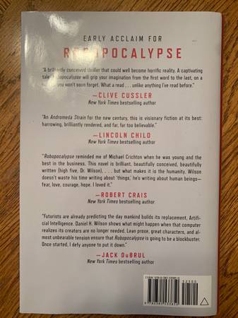 HB 1st Edition of the best selling novel that brings the possibility of computers taking over the world. Best Selling author Lincoln Child says "An ANDROMEDIA STRAIN of the new century, this is visionary fiction at its best: harrowing, brilliantly rendered, and far too believable". Clive Cussler says "What a read ... unlike anything I've read before". Movie rights said to be held by Steven Spielberg.. Some damage to bottom of back cover...Water damage ???