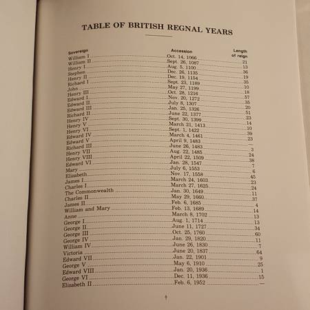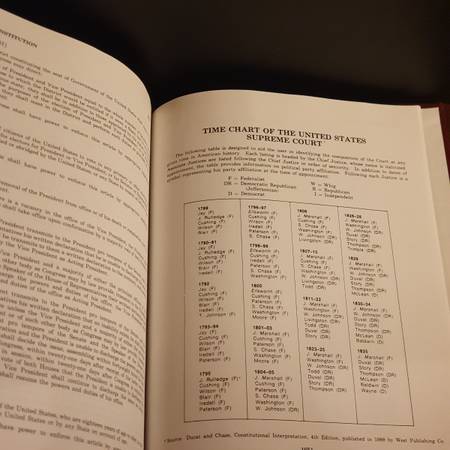 Appendices: Table of Abbreviations; U.S. Constitution; Time Chart of Supreme Court; Org Chart U.S. Government; Table of British Regnal Years.