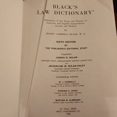 Author: Henry Campbell Black, Sixth Edition by the Publisher’s Editorial Staff, co-authors Joseph R. Nolan, Jacqueline M. Nolan-Haley; contributing authors.