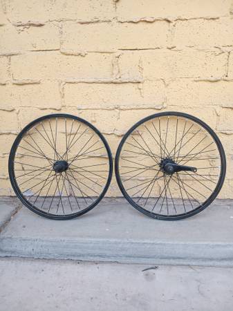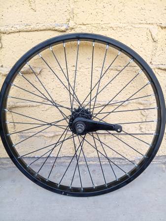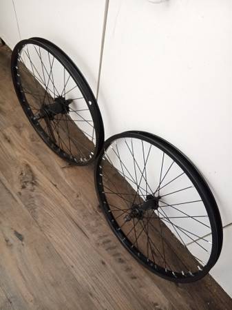 For Sale: Two 16" Bicycle Rims in Excellent Condition. Coaster brake, 16 tooth sprocket. Rims are straight, spokes are tight, bearings are good. Axle turns nice and smooth on both rims. Asking $25 for both rims. Price includes small bike frame if wanted.