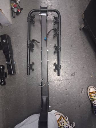 4 bike rack for rear auto with double ball hitch and dual trailer hitch so you can have bike rack and pull a trailer.