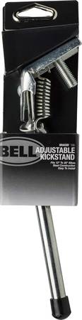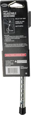 Upgrade your bike with the Bell Bracer 100 Adjustable Bicycle Kickstand. It features a durable all-steel construction with a chrome finish for enhanced rust and corrosion resistance. The Bell adjustable kickstand fits most bicycles from 12" to 26". It also has a protective tip and is spring-loaded for easy opening and closing. The stand includes a metal clamp that securely attaches to a bicycle frame and pre-drilled holes with a screw for easier height adjustments.