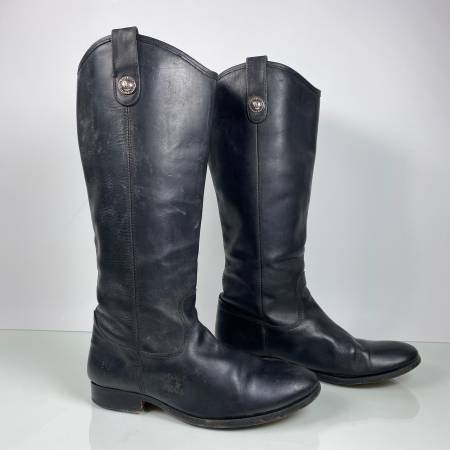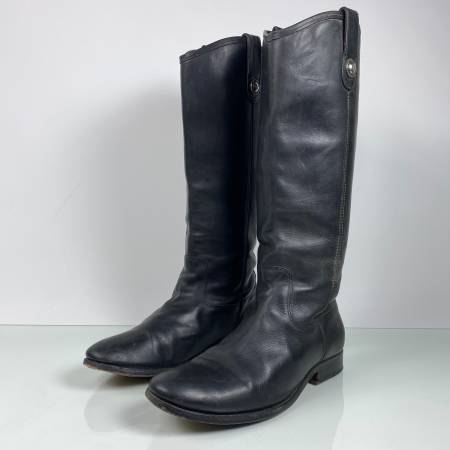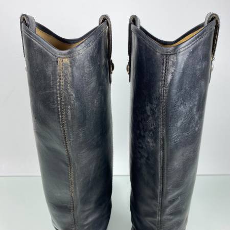 FRYE MELISSA BUTTON BLACK LEATHER KNEE LENGTH RIDING BOOTS