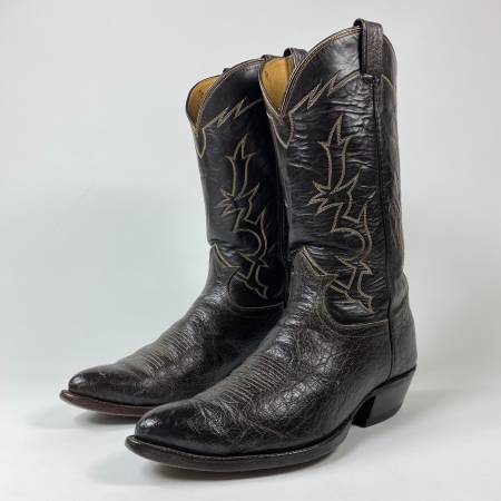 TONY LAMA DARK BROWN SMOOTH OSTRICH COWBOY BOOTS
