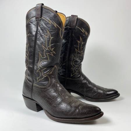 TONY LAMA DARK BROWN SMOOTH OSTRICH COWBOY BOOTS