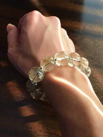 Large natural rutile quartz bracelet , very beautiful jewelry stone Rutilated Quartz is an illuminator for the soul, promoting spiritual growth. It cleanses and energises the aura. Draws off negative energy and disease, letting go of the past. Rutilated Quartz gives protection against the ill thoughts of others. It helps to reach the root of problems and facilitates transitions and a change of direction. Soothes dark moods and acts as an antidepressant. Rutilated Quartz relieves fears, phobias and anxiety. Promotes forgiveness at all levels.
