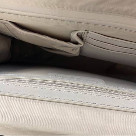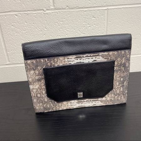 Never used. Large size. 12-inch square measurement. Magnetic snap-flap closure. Outside pocket. Interior zippered and smartphone pockets and three card slots. Lined. Check out the link for other items I have for sale. Please leave a message if I am not available. No e-mails please. Texting is okay.