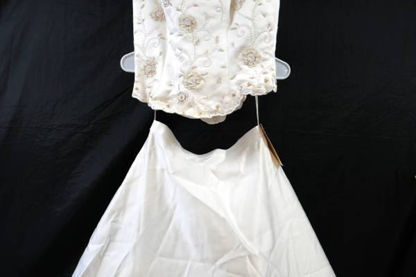 New 2 Piece White Wedding Dress sz 8. has tags with $599.00 on it. It was stored in a bag so it will need some steaming and some cleaning up. asking $190.00 for it or make an offer or trade? I am on...