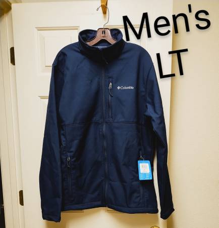 New with tags! Men's Columbia Ascender soft shell, front-zip Jacket in Collegiate Navy color. Water-resistant.