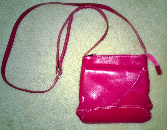 Small Red purse is Pelle 7" x 7" x 1.75" with 23" adjustable strap. Made in Italy.