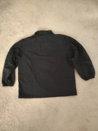 Brand new in original packaging, never been worn, package opened only to take photos. This size XL, extra large, full zip, black jacket features the Vegas Golden Knights emblem on the top left front, STATION CASINOS in curved white stitching on the lower left sleeve, and 2 front slit pockets. Bottom of sleeves have elasticized hem for extra warmth. Jacket measures about 26 inches from underarm seam to underarm seam, 30 1/2" from top of shoulder to bottom of hem. Made of 100% machine washable, line dry polyester with a full mesh lining. Comes in sturdy, seal top reclosable plastic bag with convenient handle cutouts for easy carrying