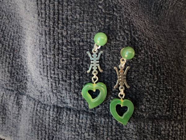 Very nice vintage silver natural Jade earring Jewelry old Jade earrings