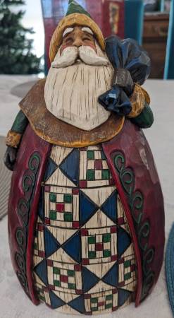 This Jim Shore Santa stands approximately 8.5” tall and 5 1/8” wide. Great condition.